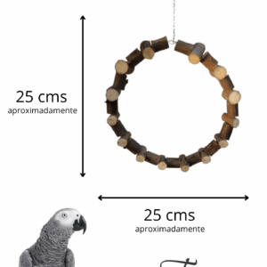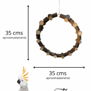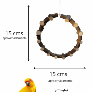 Feita de eucalipto com casca, super natural , e pequenos detalhes de cor que também são estímulos para sua ave, deixam essa argola ainda mais divertida.