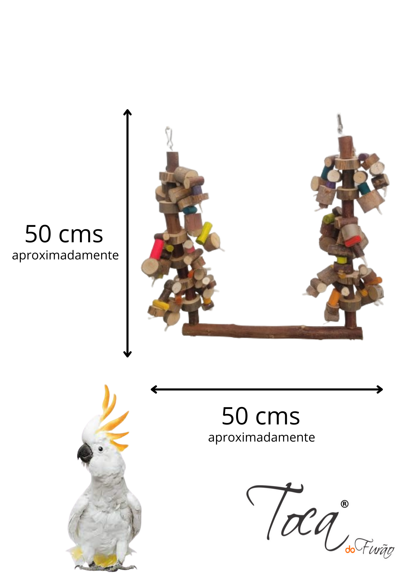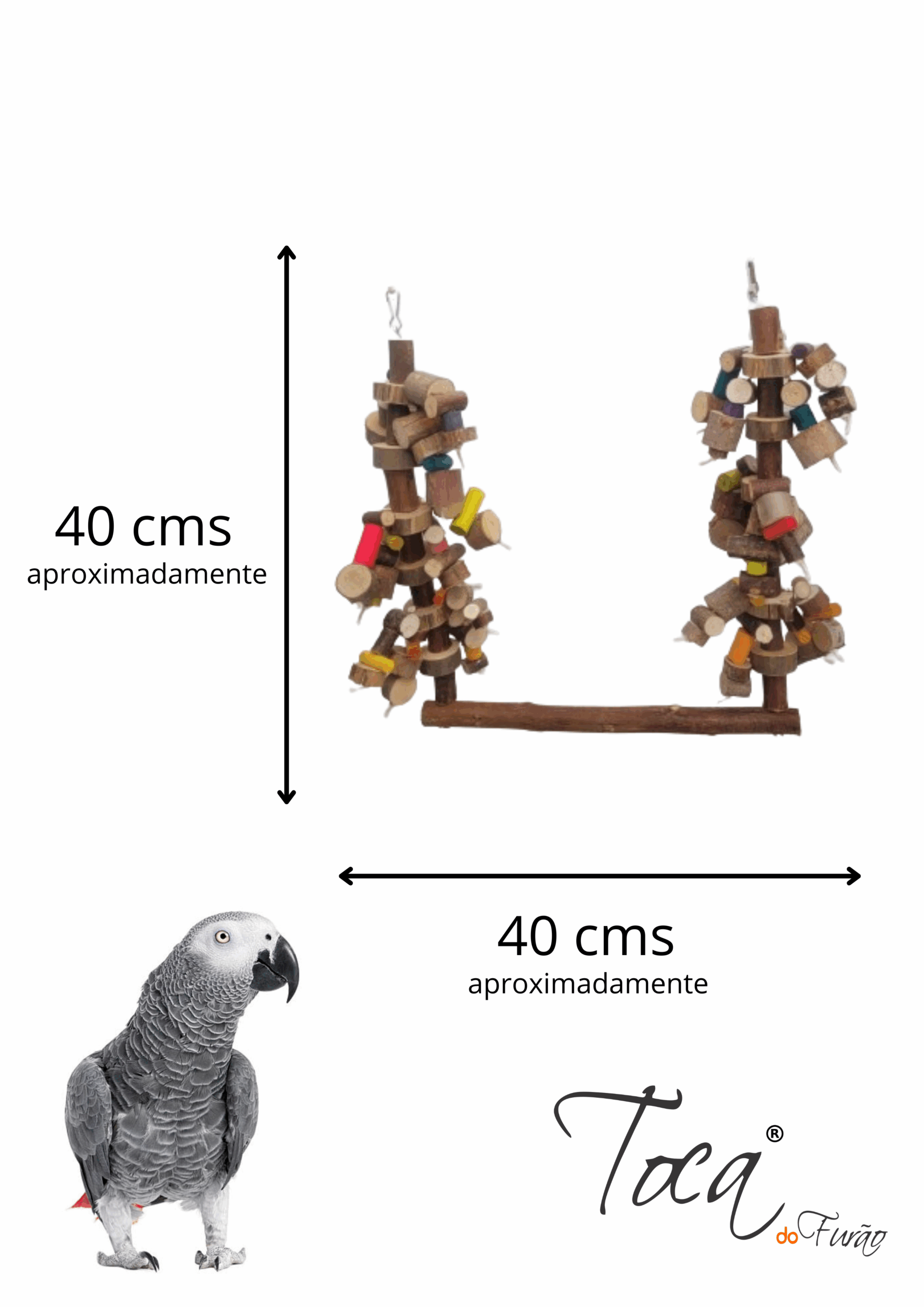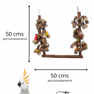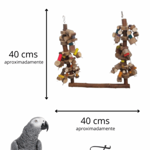 Balanço super especial, com penduricalhos laterais que chamam a atenção da ave, e ajudam a tirar ansiedade e estresse… indicado para aves grandes e médias por ser um brinquedo mais bruto e grandalhão.