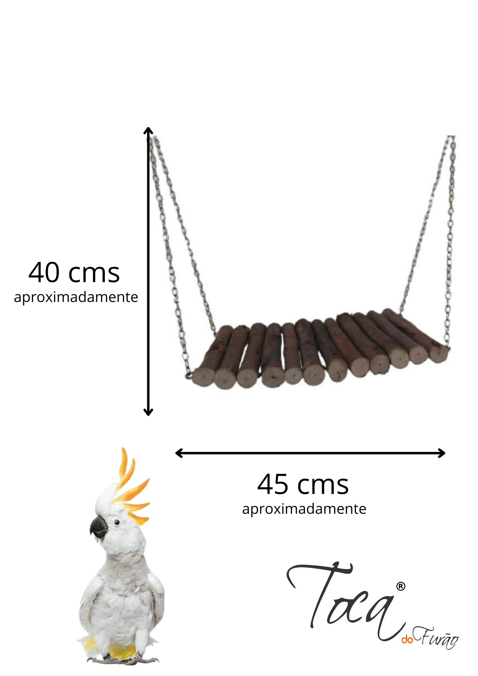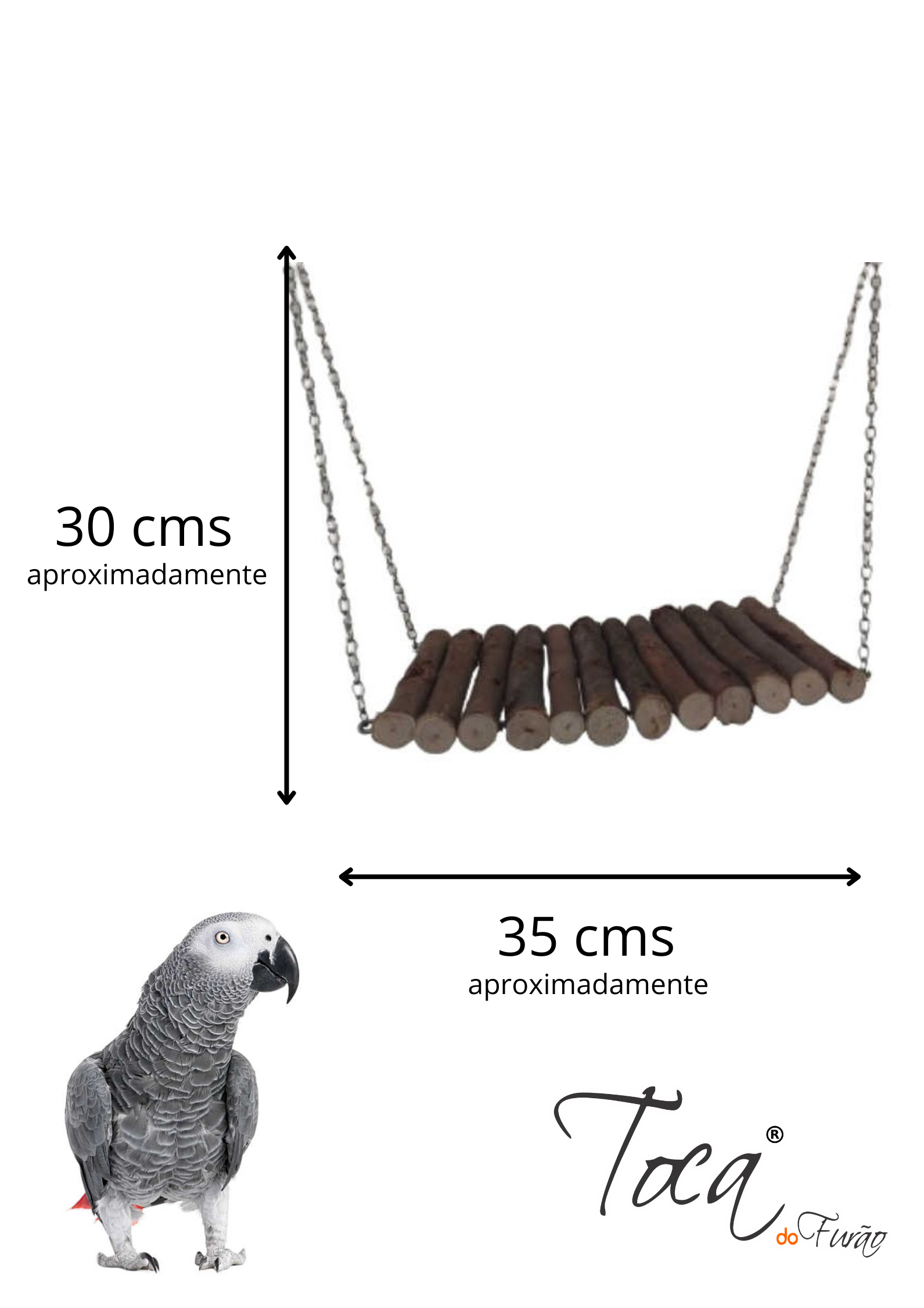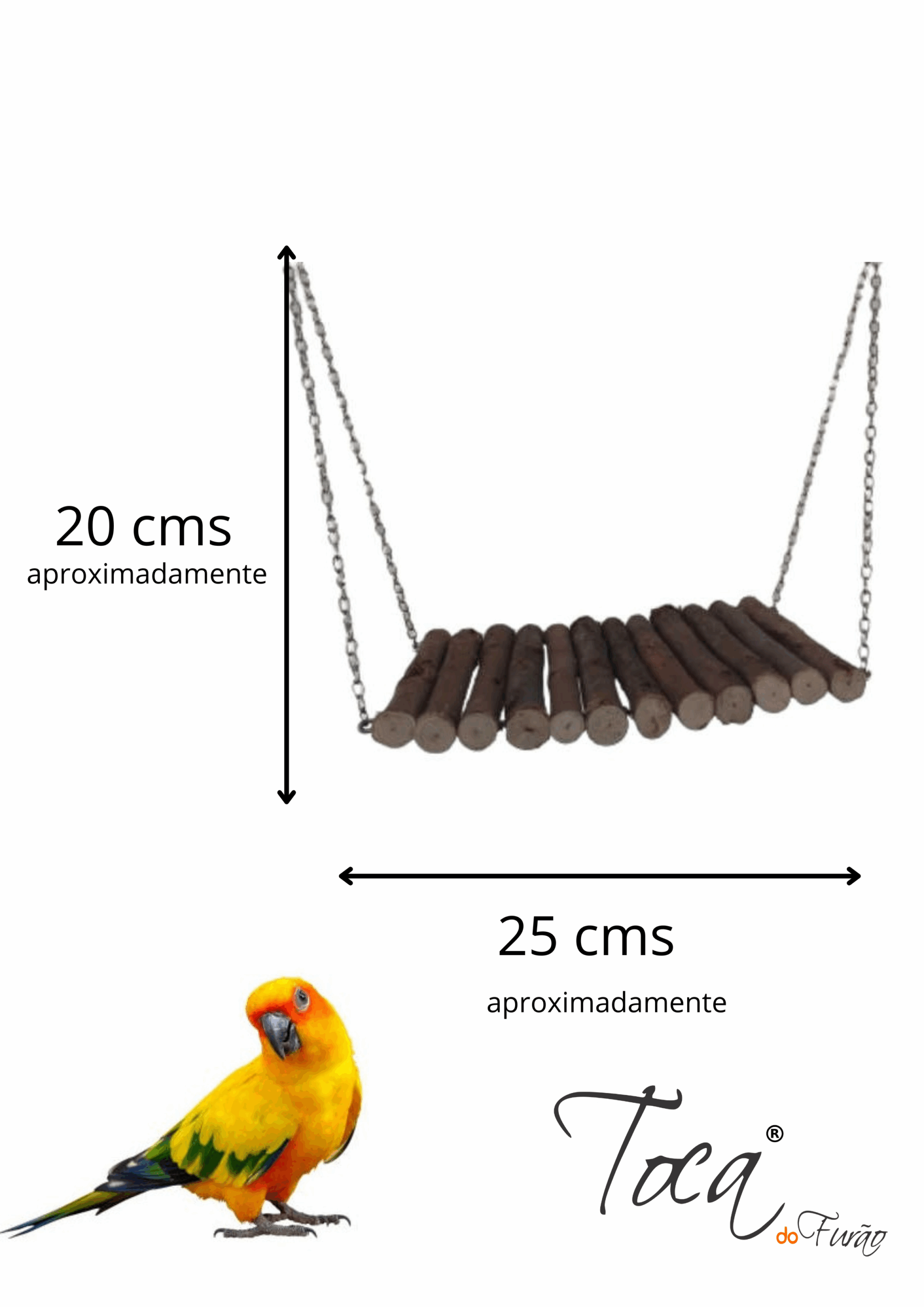 Além de balançar, criar novos patamares no viveiro, esse brinquedo é importante para a ave abrir a pata , descansar , e mudar a posição dos pés.