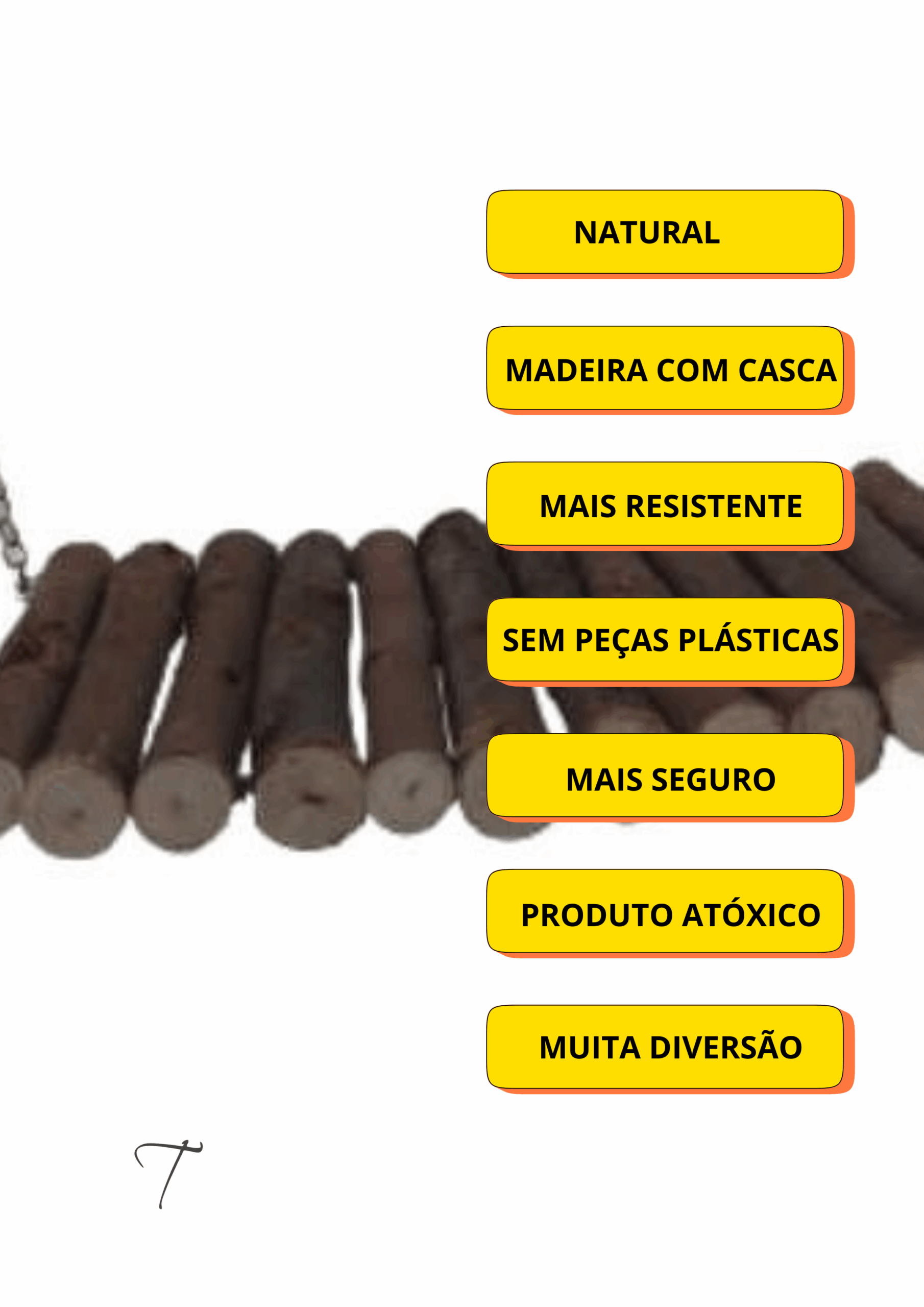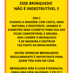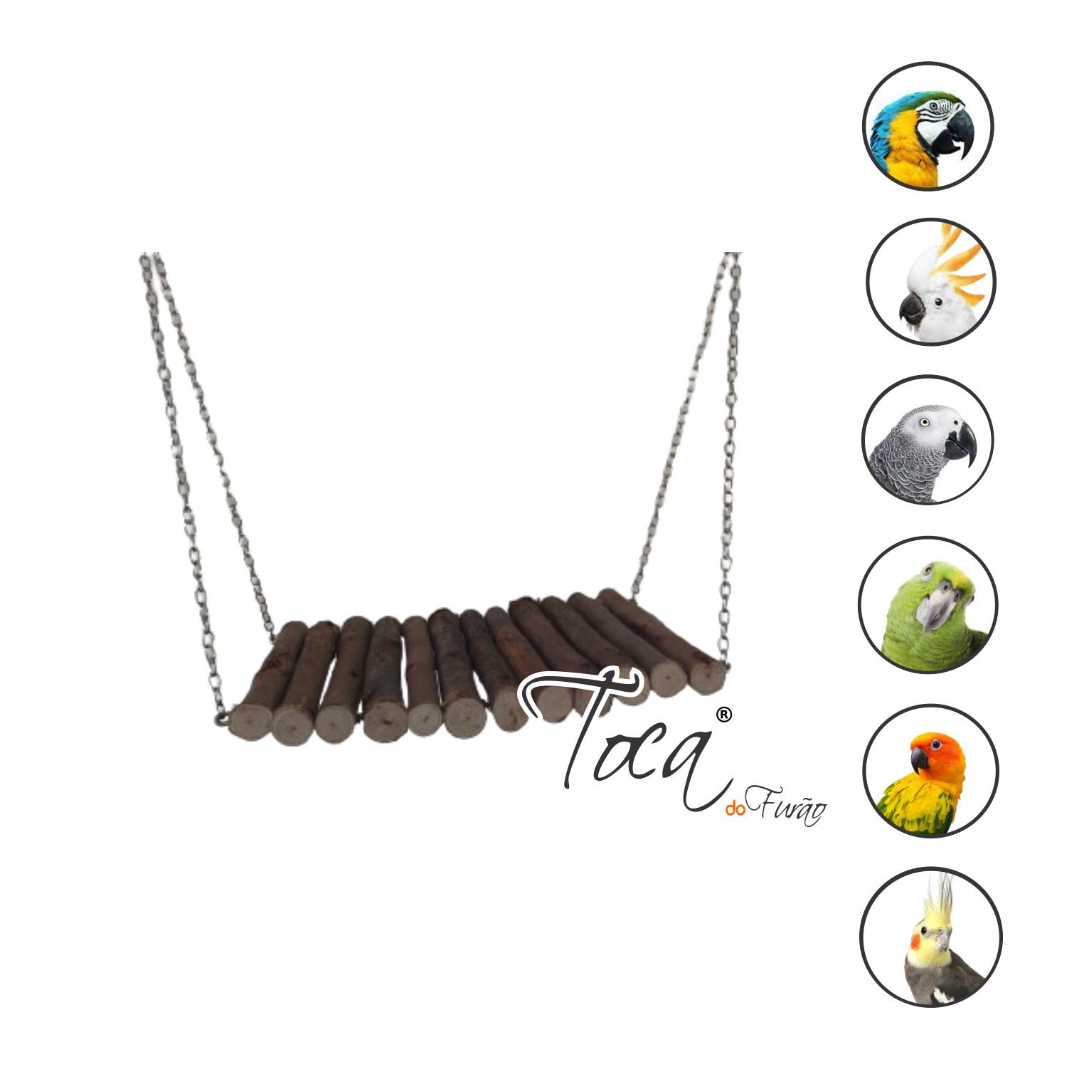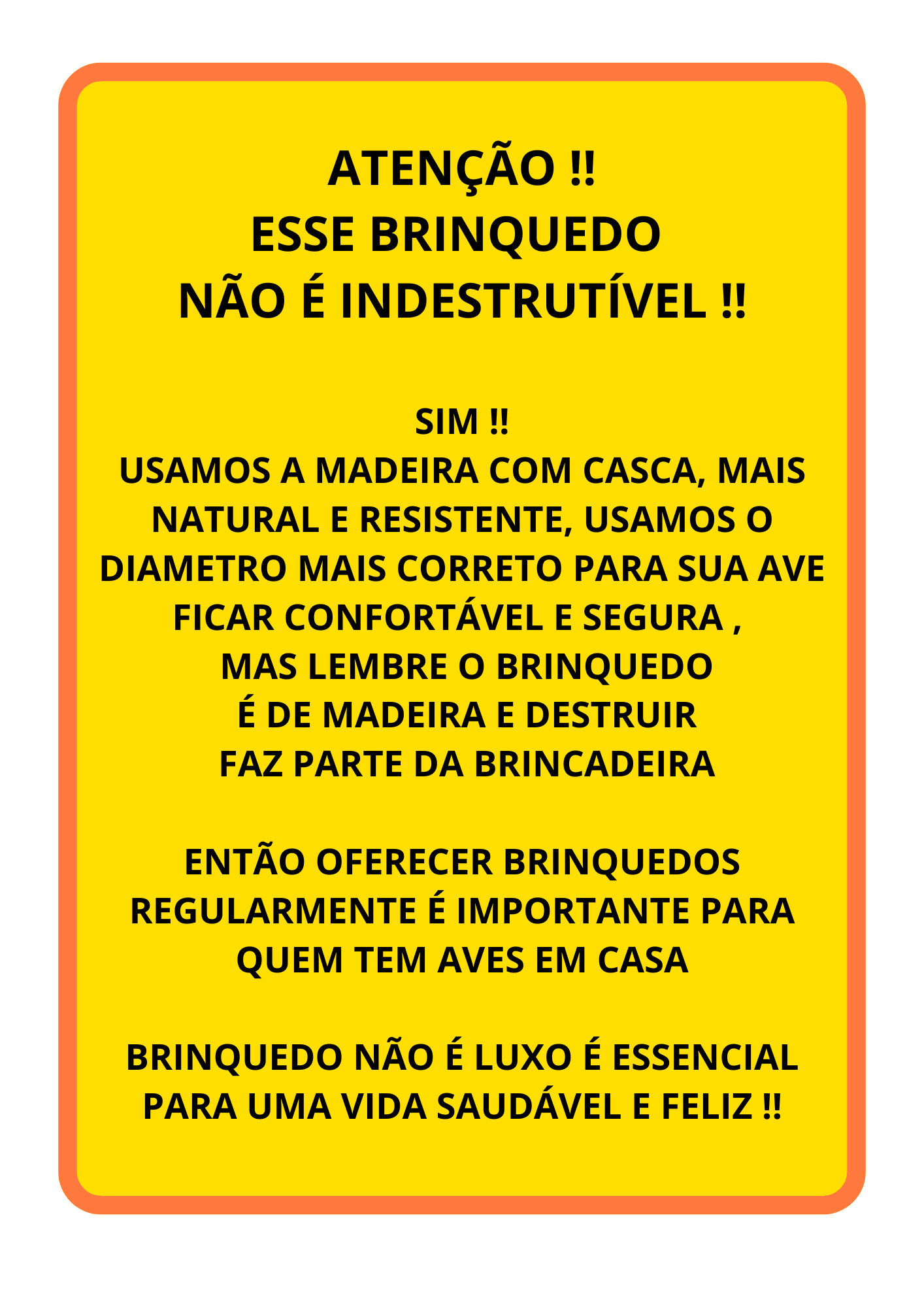 Além de balançar, criar novos patamares no viveiro, esse brinquedo é importante para a ave abrir a pata , descansar , e mudar a posição dos pés.