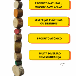 Selecionamos a madeira adequada para cada tamanho de brinquedo e animal que terá contato com ele, mas ainda assim pode haver uma variação de diâmetro na madeira utilizada.
