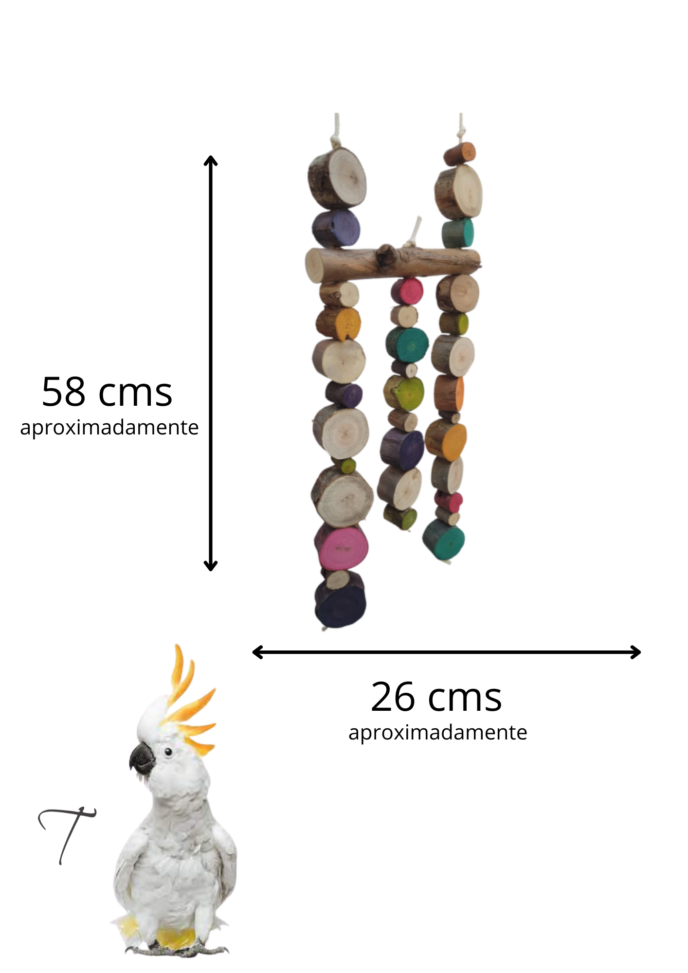 Com alças de algodão , vc pendura na sua gaiola ou viveiro , na altura que desejar , como desejar…