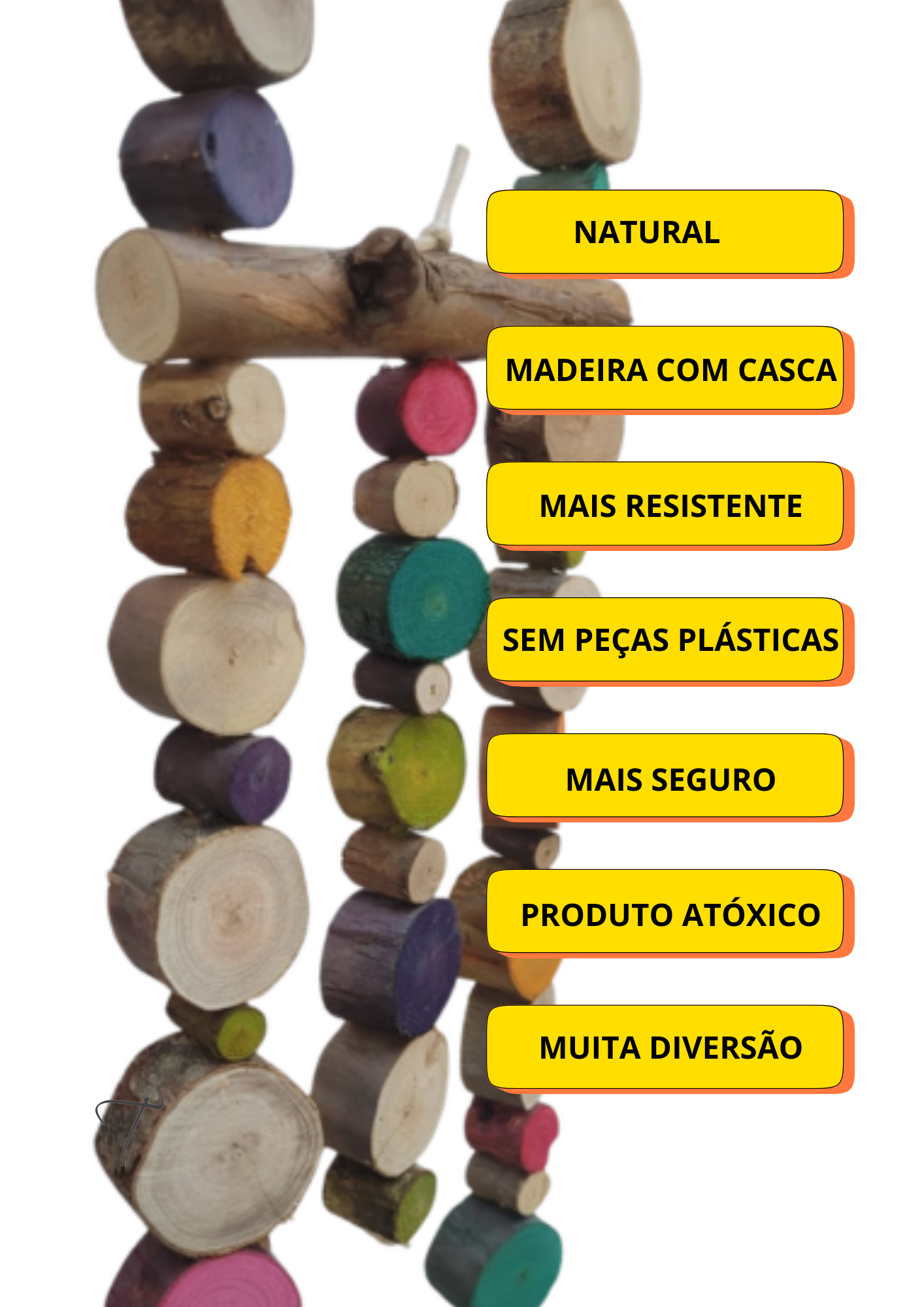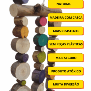 Brinquedo todo feito de eucalipto, até as peças coloridas também são de eucalipto , uma inovação no mercado pet !! O eucalipto com casca é uma madeira mais resistente ,essa coleção é ideal para quem ama cor mas não abre mão da madeira com casca.
