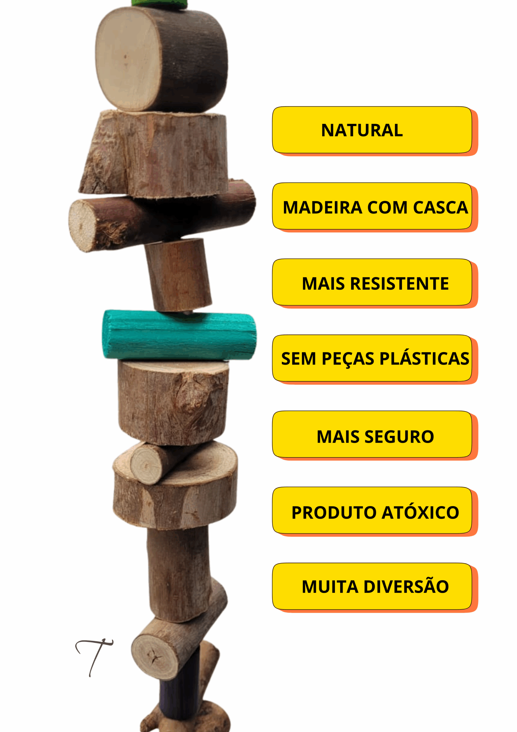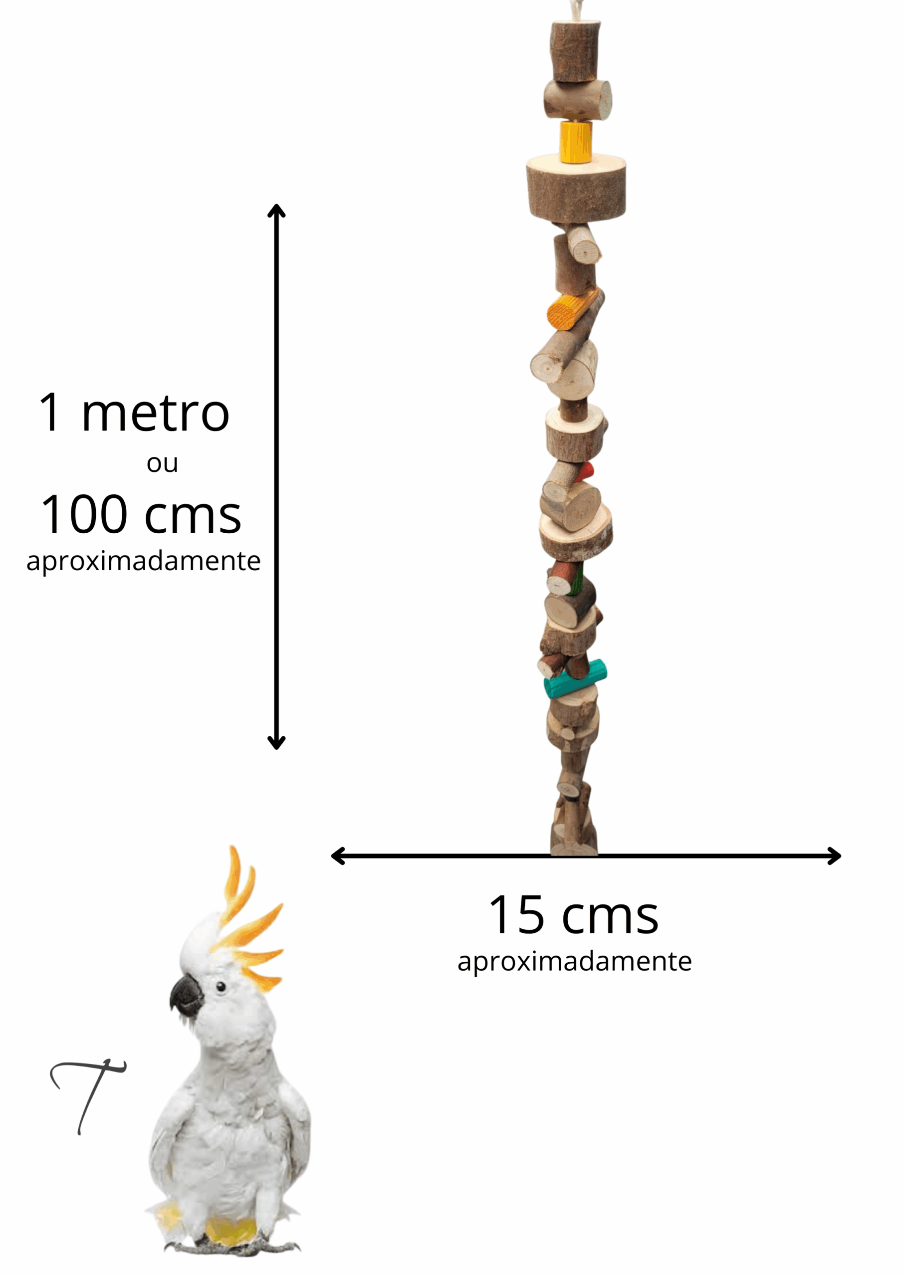 Pensamos em todos os detalhes e fizemos esse brinquedo para vc sempre deixa-lo como novo sempre….,conforme sua ave for destruindo as peças , basta desfazer o nó que veio, apertar as peças para cima e fazer um novo nó, segurando as peças que sobraram, então sempre vai adaptando o brinquedo , diminuindo o tamanho dele, mas deixando ele sempre com cara de novo
