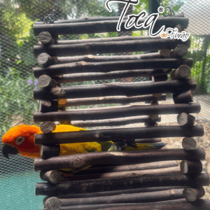 Peças metálicas, como correntes e mosquetões, podem chamar a atenção do seu pet, se você perceber que sua ave tem interesse nisso, retire o brinquedo, e escolha outro tipo de produto, temos muitas opções disponíveis